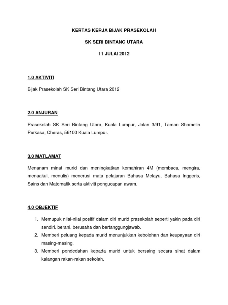Kertas Kerja Bijak Prasekolah Pdf