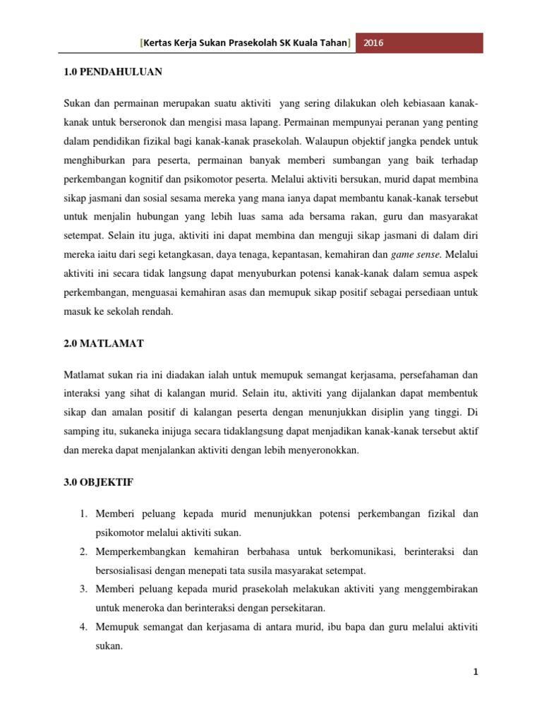 Kertas Kerja Sukan Pra 2016 Pdf