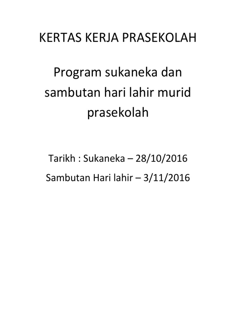 kertas kerja sukaneka prasekolah
